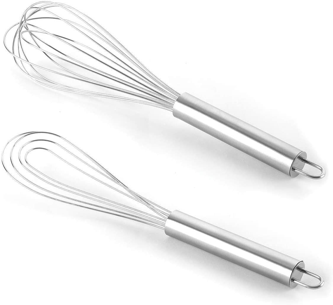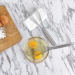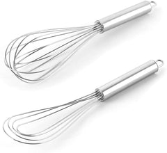 Mixing of all sorts is now sleeker and easier with this Stainless Steel 10" Whisk Bundle. The bundle includes a balloon whisk and a flat whisk. Balloon whisks are perfect for use with mixing bowls while flat whisks are best for sauces, beverages, and other liquids. These whisks are both constructed of sturdy stainless steel, affixed with hanging loops at the end of the handle for easy storage.