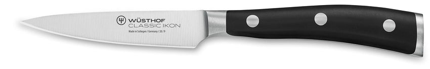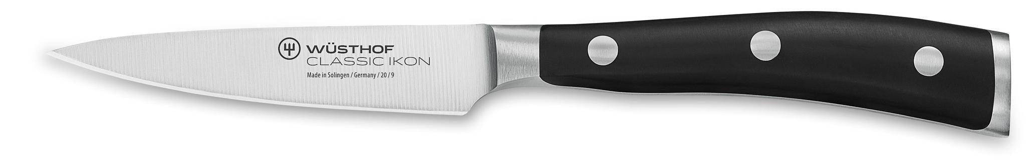 Versatile 3.5 inch peeling knife for mincing shallots, onions and herbs as well as cleaning and cutting vegetables. The Peeling knife is one of the most widely used tools in the kitchen. Its versitily of uses is a mainstay in any kitchen a quality parer like the Classic Ikon is a real pleasure for your small cutting needs. Wusthof Classic Ikon is culmination of all the best features of each of the Wusthof knife lines. The combined riveted handle design is combined with a contoured shape to add comfort and control. The Classic Ikon adds a rear bolster that acts as a counter balance when using the knife. This second bolster adds significant blade control. Classic Ikon has a unique forward bolster as well. The forward partial bolster is designed so you can sharpen the complete length of the blade. This bolster is also curvered inwards to allow your fingers greater control while holding the knife by the blade. Located in The Cutlery Capital of the World, Solingen Germany, the Wusthof factory history goes back as far as 1814 when the company was listed with the Duchy of Berg. To this day, the company remains family owned.
