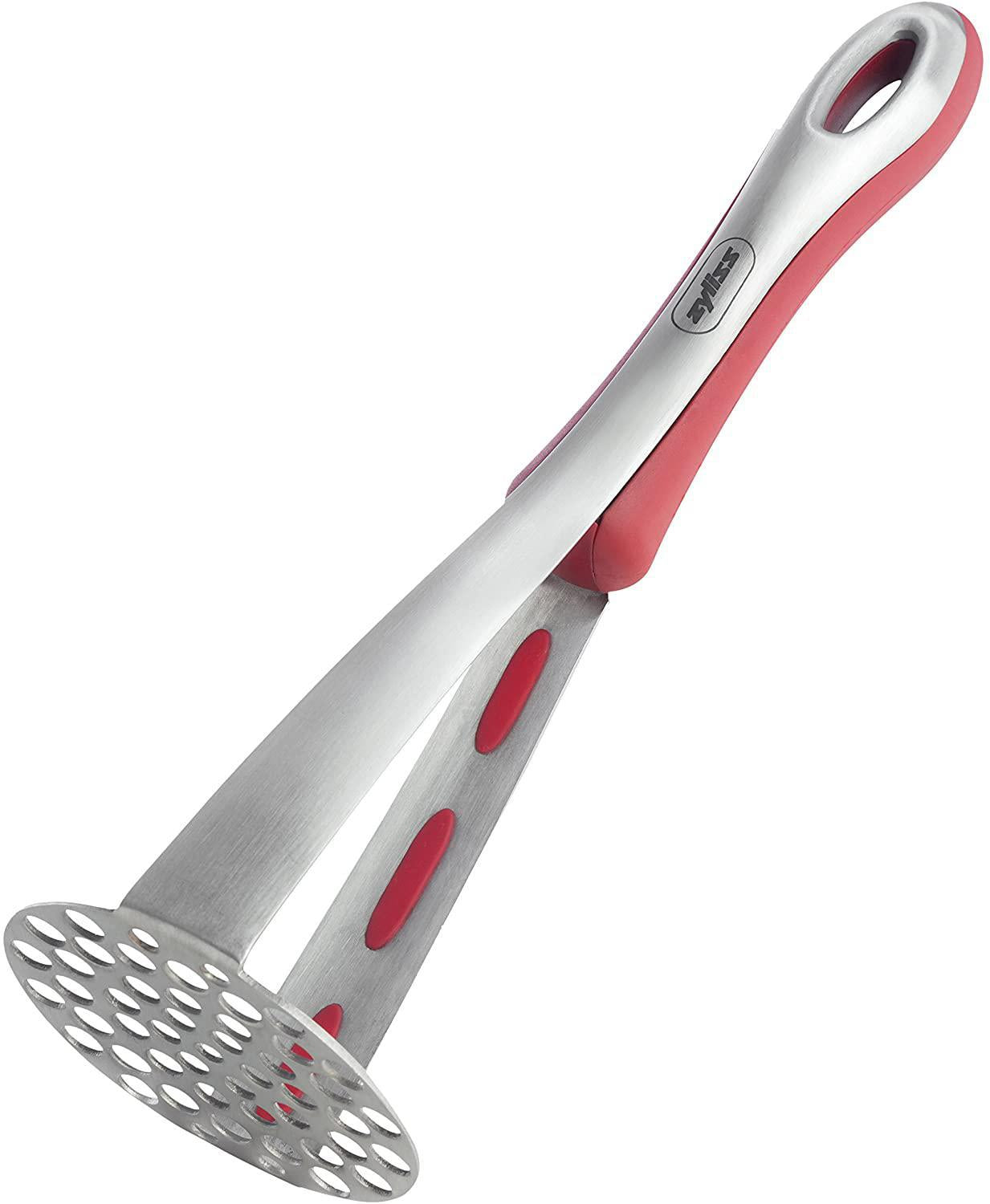 The Zyliss Potato Masher is crafted from premium quality 18/10 stainless steel with soft touch handle for secure grip. The masher features an integrated hanging hook for easy, sleek storage. Integrated silicone bowl scraper removes everything you mash from bowl for less waste. Features small inner holes and larger outer holes for quick mashing without leaving any lumps behind.